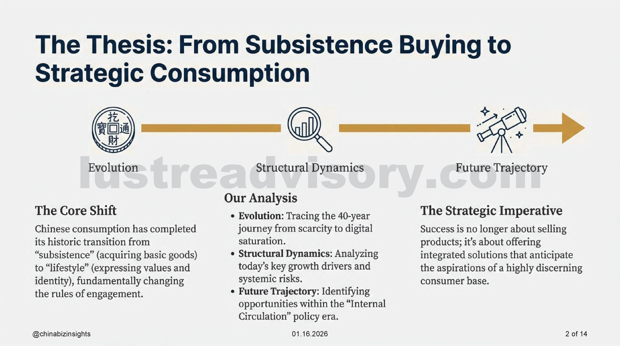 Over the past four decades, China's consumer market has transitioned from a period of scarcity and basic survival to a sophisticated, digitally-driven landscape centered on personal lifestyle. Historical analysis reveals a progression from the initial acquisition of household durables in the 1980s toward a modern experience economy defined by brand consciousness and service-oriented spending. Today, e-commerce and mobile payments dominate the retail environment, with significant growth appearing in lower-tier cities. Despite this evolution, the sector faces structural headwinds such as slowing income growth and wavering consumer confidence, which the government’s internal circulation strategy seeks to mitigate. Current trends highlight a shift toward green and smart consumption, where purchasing decisions act as expressions of environmental values and technological integration. Ultimately, the sources suggest that future economic success depends on moving beyond selling simple products to offering integrated lifestyle solutions that resonate with evolving consumer aspirations.